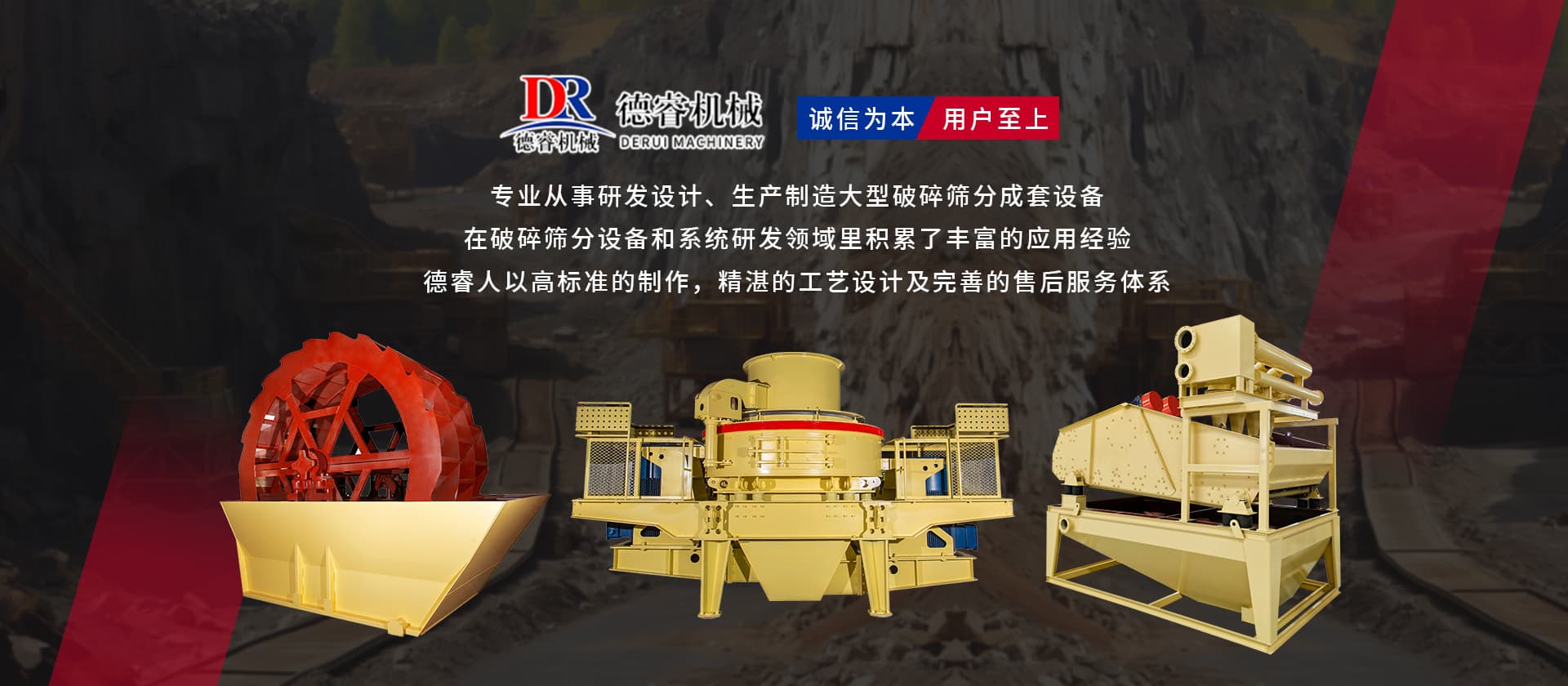 德睿重型機械是從事研發(fā)設計、生產制造大型破碎篩分成套設備的現代高新技術企業集團,公司總部座落于廣東工業重鎮、韶關市湞江區工業園,有現代化辦工場地、研發(fā)中心和標準化廠房,多種大型機械加工設備10余套,現公司技術人員40余名。 公司在主要城市均設有辦事處,配有豐富實戰(zhàn)經驗的設計工程師,方便為各地客戶現場分析、配置生產線并提供及時、周到的售后服務。 目前產品已覆蓋東南亞、中東、非州、歐州等多個國家和地區,并獲得客戶的好評。公司已成為主要的專業礦山設備,工業磨粉、碎石制砂設備的生產和出口基地之一。 “誠信為本,用戶至上”德睿人以高標準的制作,精湛的工藝設計及完善的售后服務體系在破碎篩分設備和系統研發(fā)領域里積累了豐富的應用經驗。借助在破碎行業的豐富經驗,公司可向客戶提供碎石制砂生產線設計、安裝、調試等交鑰匙工程,同時承接破碎系統的爆破、裝運、破碎等生產運行總承包。